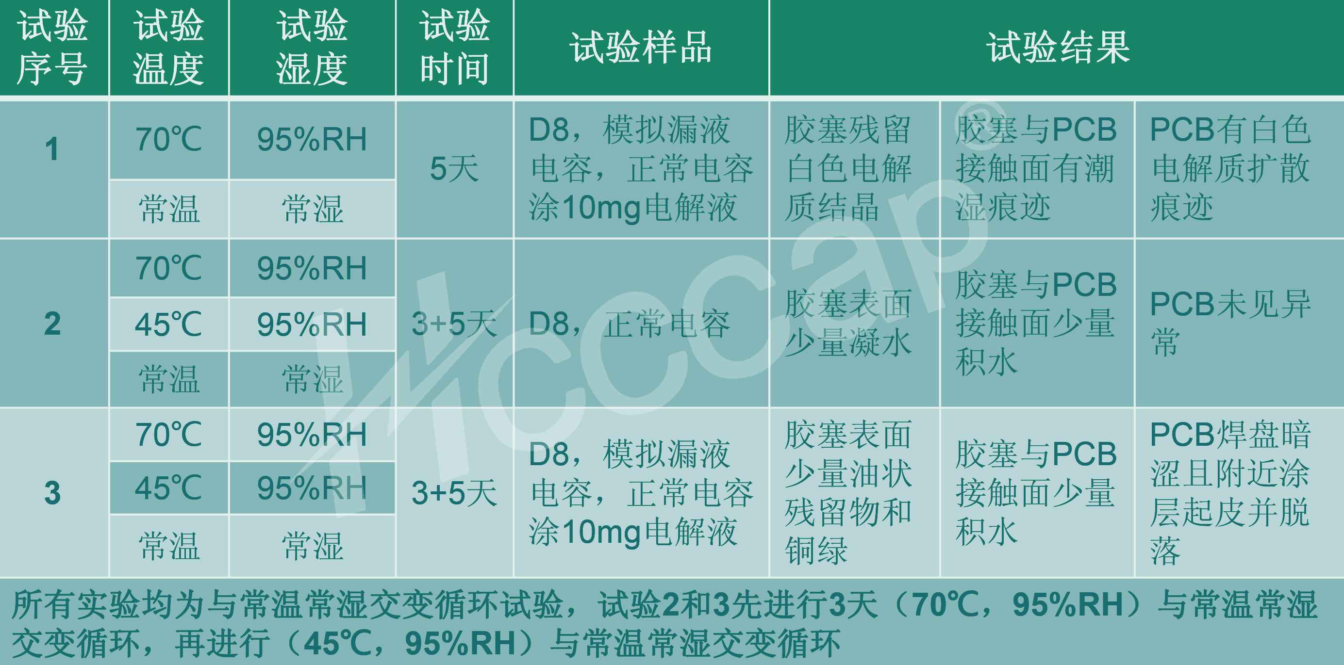 2.长时间高温高湿试验(高温使电容内部气压升高,电解液易渗出)